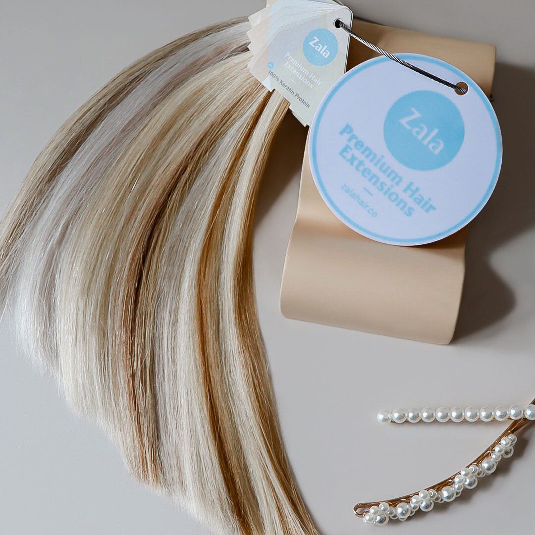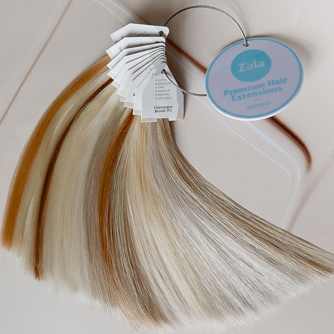 Our hair colour wheels allow you to sample all ZALA shades! This includes highlighted extensions. The same colour system applies to all types of our human hair extensions, including clip-ins, tape-ins, weaves, and volumizers.